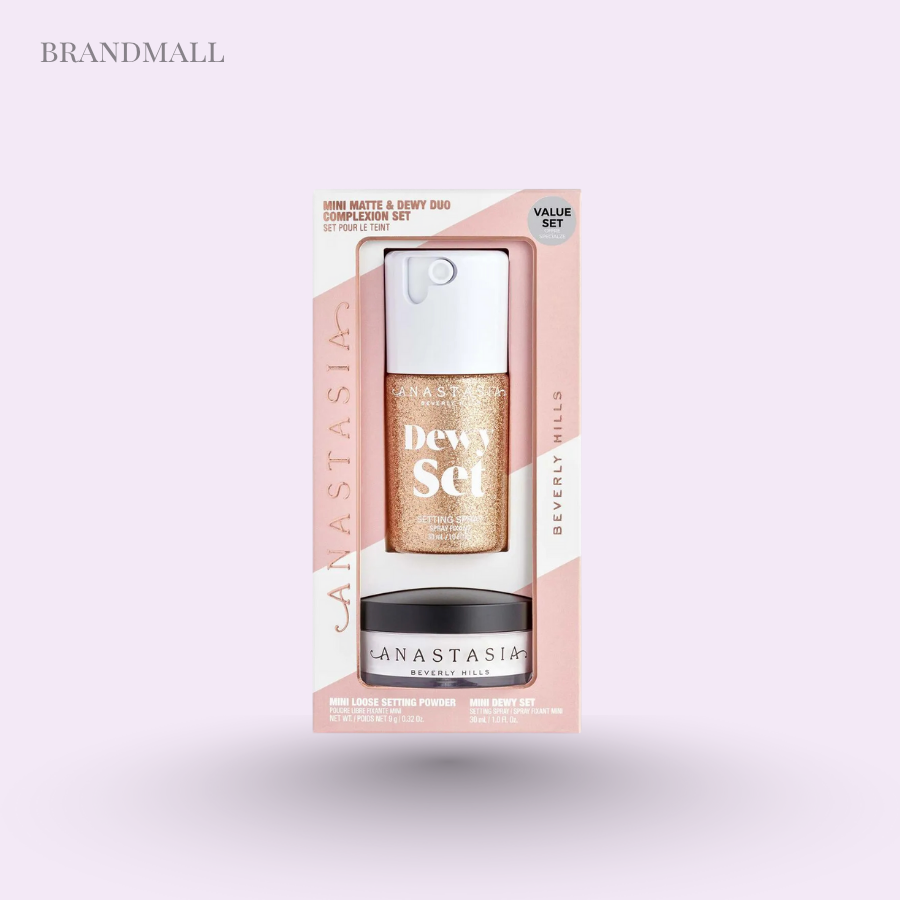 Anastasia’s Dewy Set duo pairs the cult-favourite hydrating Dewy Set Setting Spray with a soft, superfine loose setting powder so you can build dewy radiance and still set makeup for longer wear. The Dewy Set mist layers lightweight hydration and a radiant finish, while the loose powder helps control hotspots and cleanly set makeup without dulling the glow.